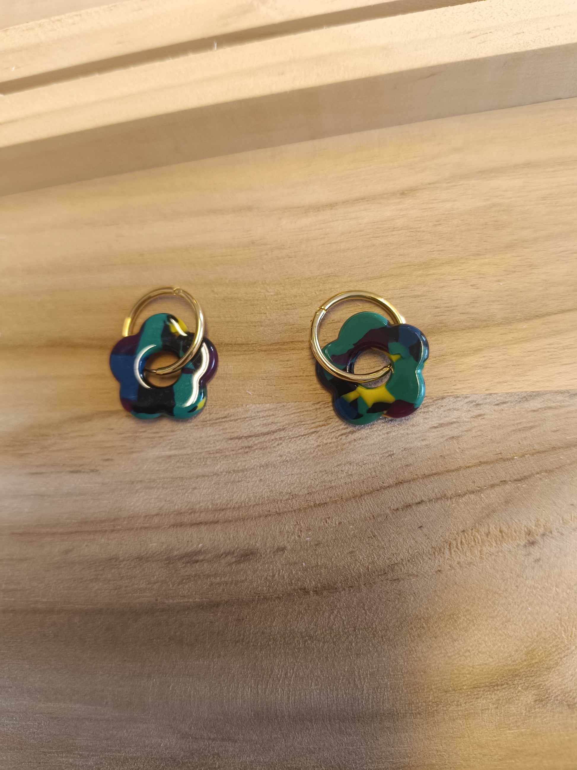 Boucle fleur vert / noir